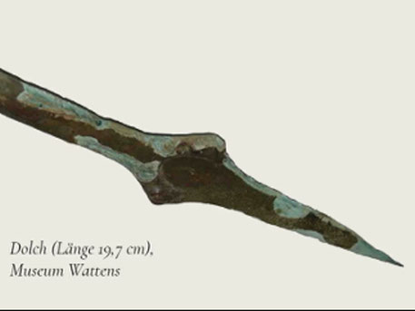 Der Vortragsabend spannt ein weites Feld auf: LEWAL-Obmann Hannes Erler entführt zunächst in die regionale Ur- und Frühgeschichte. Spektakulärer Ausgangspunkt ist ein rund 3500 Jahre alter Dolch aus der Bronzezeit, der 1976 am Klammjoch im Wattental gefunden wurde und das älteste Artefakt in der Sammlung des Museums Wattens darstellt. Beim Vortrag ist das knapp 20 cm lange Objekt erstmals öffentlich zu sehen. „Dank neuester Diagnosetechnik gibt uns der bronzezeitliche Dolchfund tiefe und überraschende Einblicke in die Entstehungsgeschichte von Almwirtschaft und Handel von der Bronzezeit bis heute“, sagt Erler.